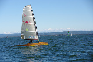 Hayden won with the new String like AUS30 and Christian was consistantly second with Steve Clark's Josie now AUS26. Both sailed higher to windward than the Log and that was the basic difference in performance. These were the only new rules boats while there were 4 nethercotts competeing as well. So many old hand canoe sailors decided not to race?